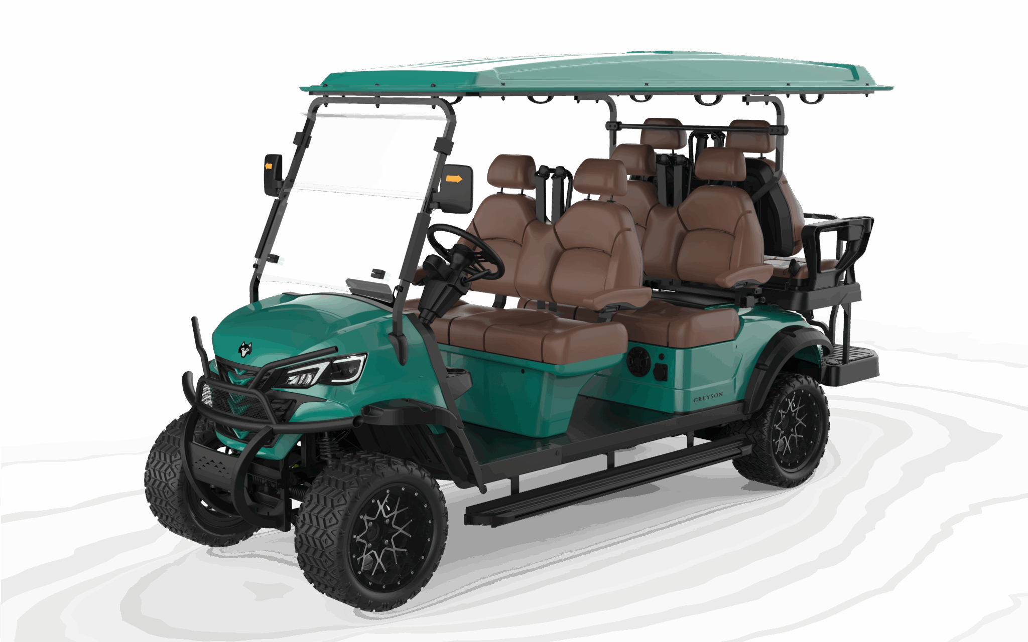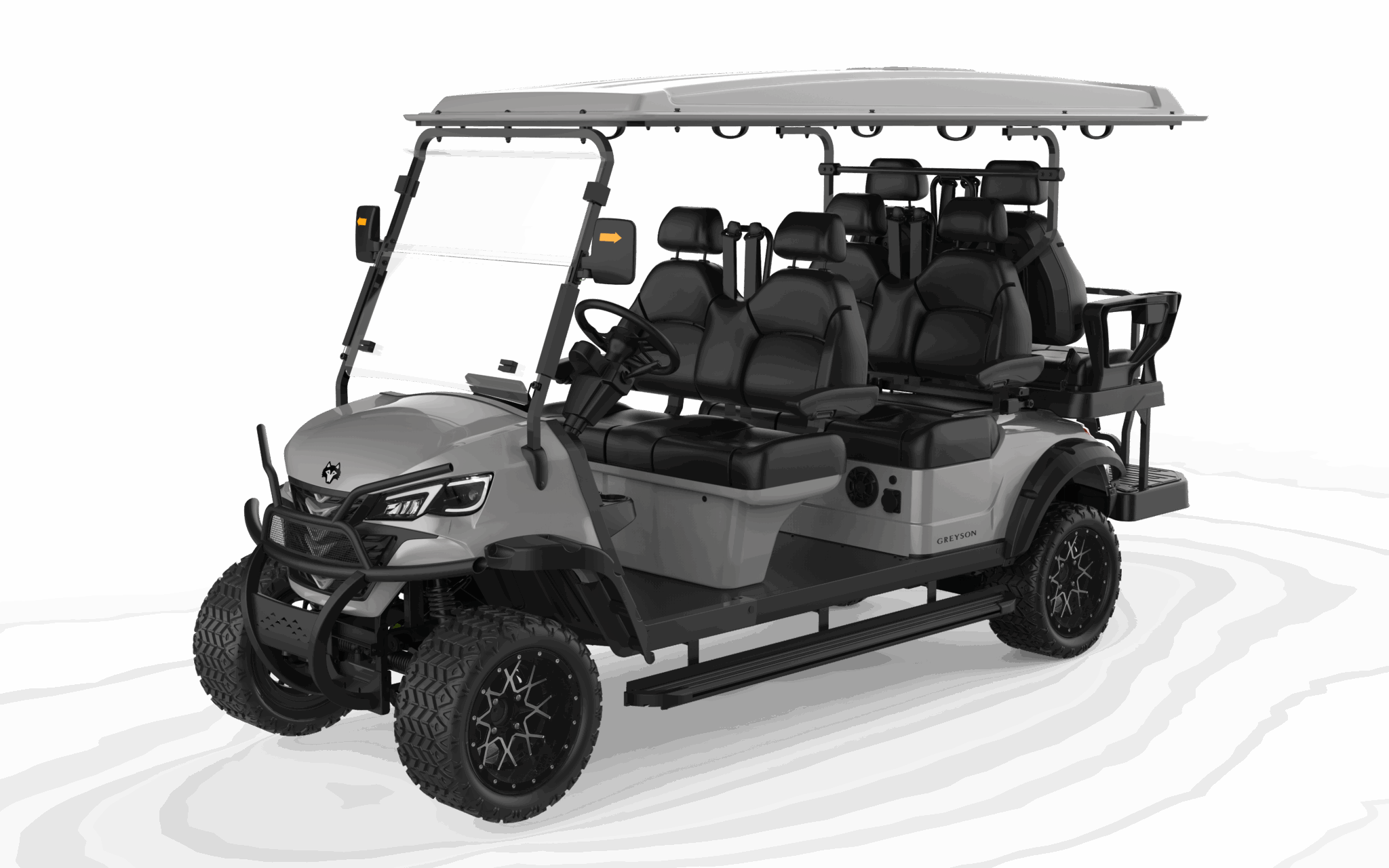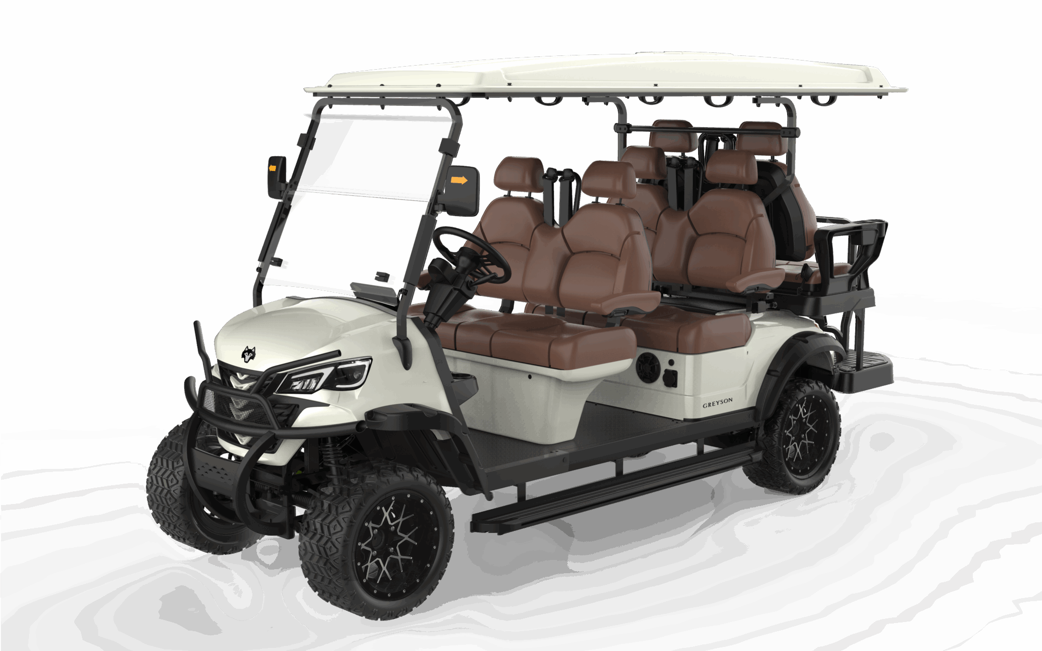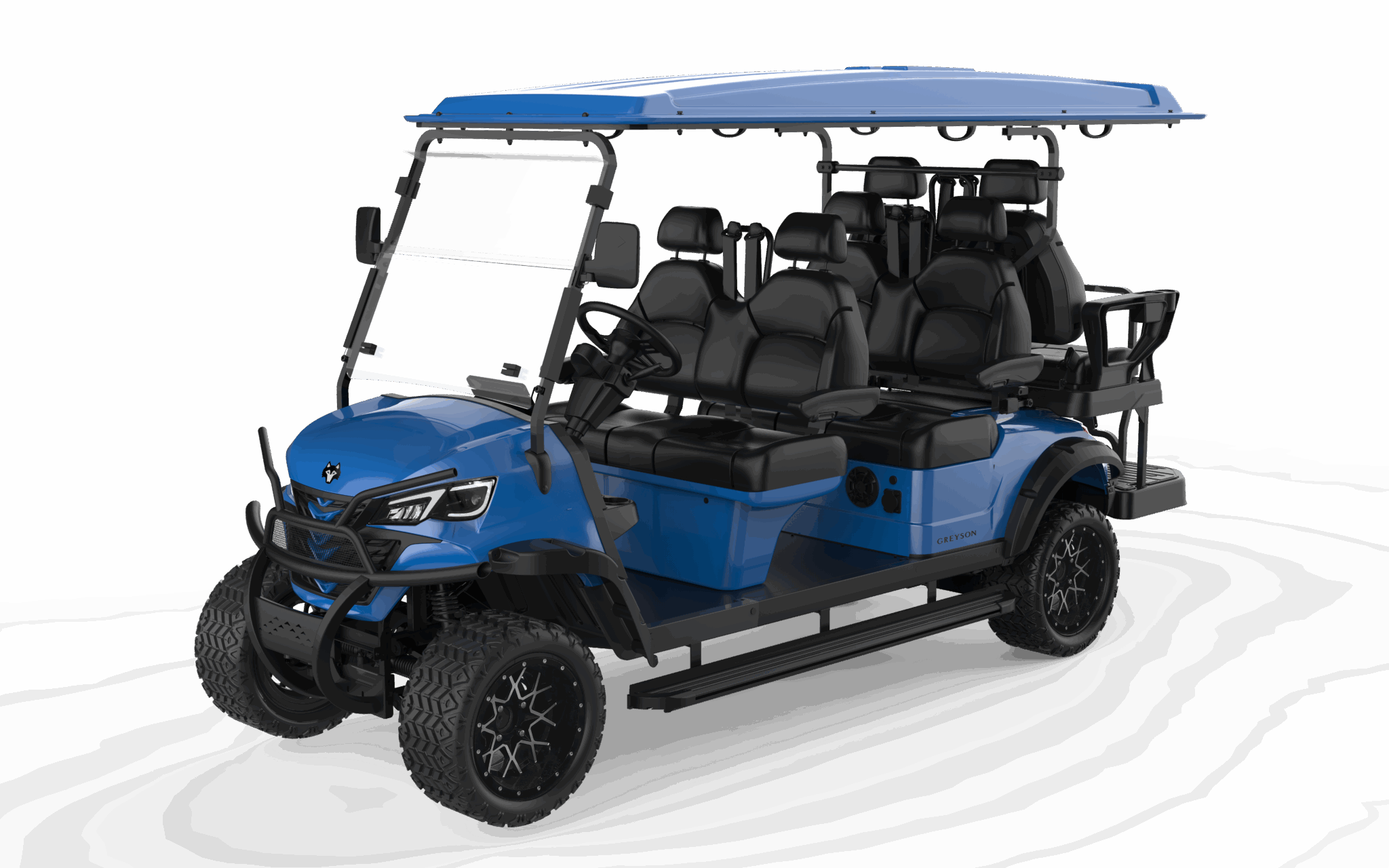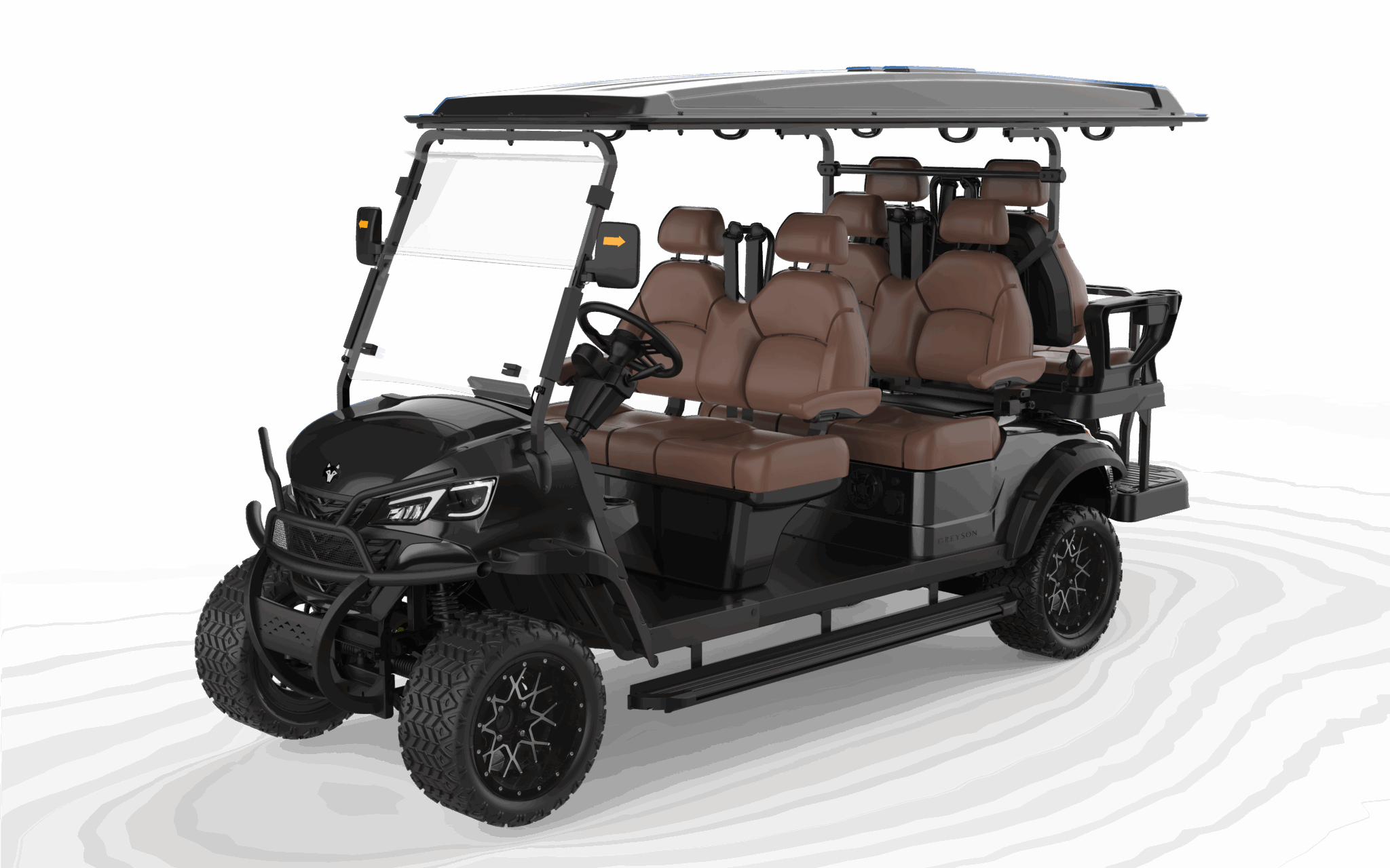 The spacious three-row layout, integrated touchscreen, premium audio, and LED accent lighting give this cart immediate presence. Whether the buyer is a resort operator, a large family, or a community fleet manager, the value is clear at first glance—helping sales teams move from features to ownership with confidence.